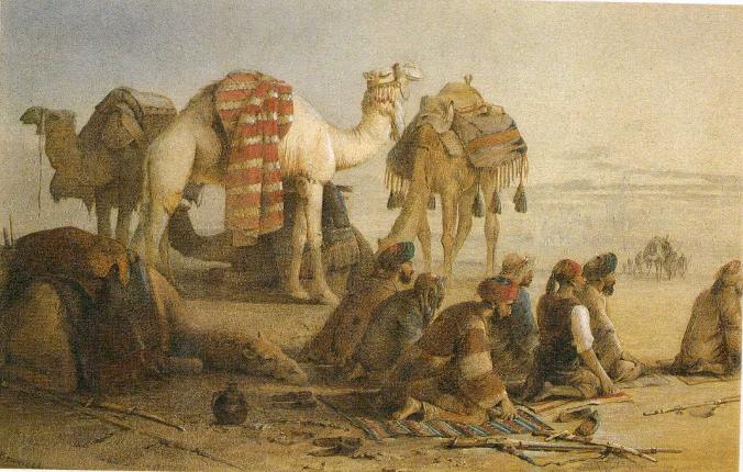 لوحة (2) وقوف القافلة لأداء الصلاة بجبال سيناء, عن,