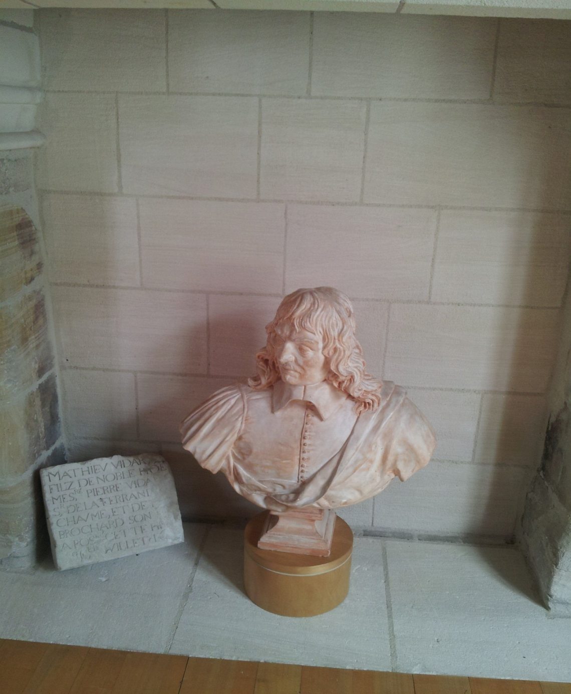 صورة بعدسة الكاب لتمثال “رونيه ديكارت” موجود وسط المنزل الذي وُلد فيه شرق فرنسا