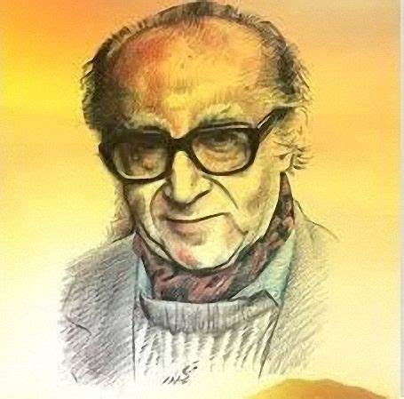 له عينان كبيرتان أو هكذا تحسبهما إذ تبرقان من وراء نظارته الغليظة العدستين والإطار يصر صوته صريرا إذا نطق ولكنه صرير وئيد عنيد يثير الأعصاب أول الأمر إلى أن تعتاد عليه فتنتبه الى ما يقوله ثم تنسى صوته وتشعر بالتحدي الذي يجابهك به فتضطر إلى أخذ الحذر فيما تقوله لئلا يسفه منك كل شيء.. (السفينة ص 107-108).