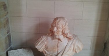 صورة بعدسة الكاب لتمثال “رونيه ديكارت” موجود وسط المنزل الذي وُلد فيه شرق فرنسا الأساس...